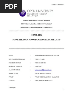 Hbml 1203 Fonetik Dan Fonologi Bahasa Melayu Pdf